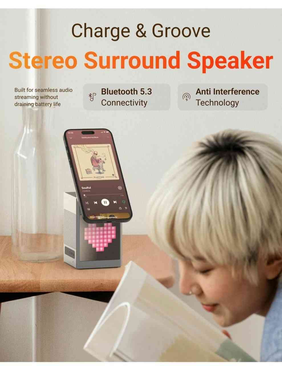 Enjoy rich, clear sound with Bluetooth 5.3 connectivity, offering faster pairing, stable connection, and low power consumption. Perfect for music, podcasts, calls, or alarm tones—whether at work or home.